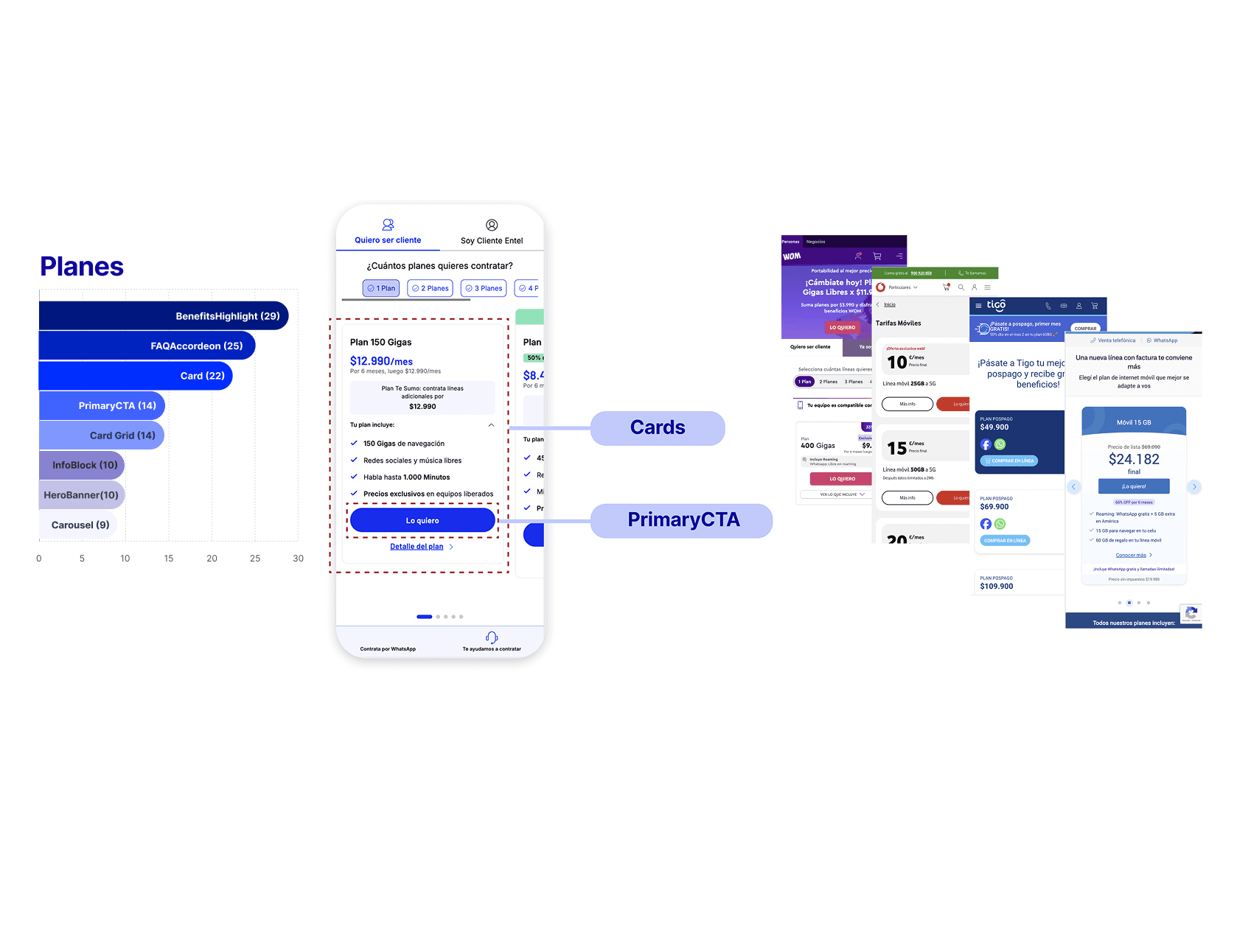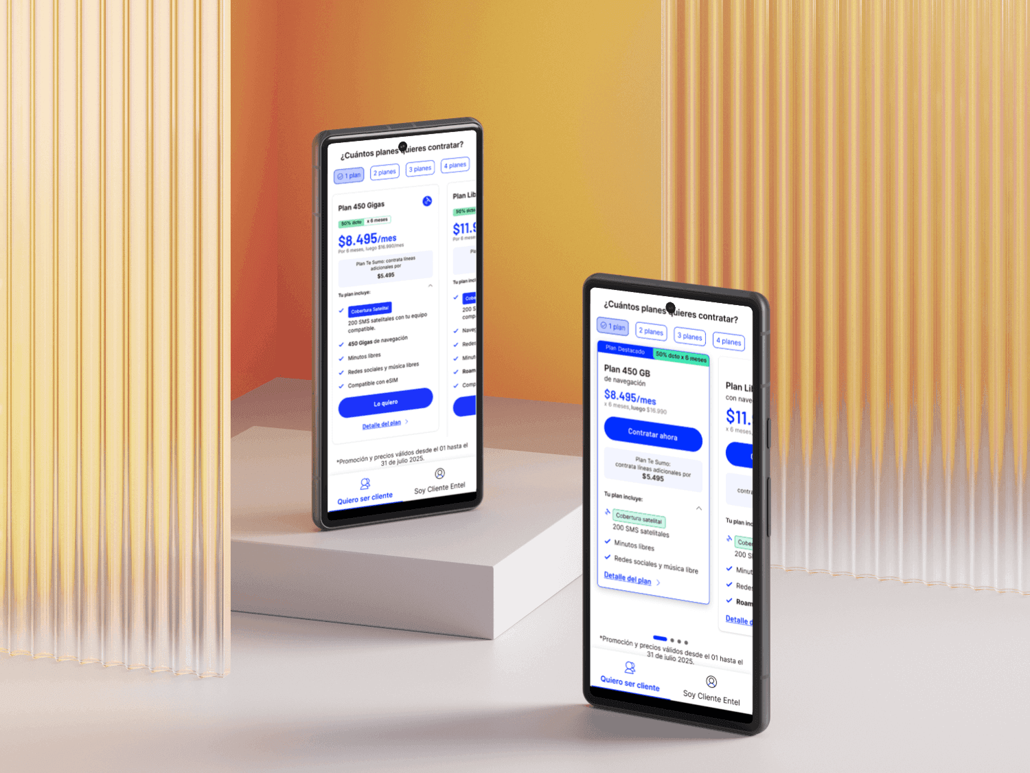 Análisis de flujos, patrones de interacción, usabilidad y accesibilidad, junto con prototipado en Figma utilizando variables, tokens y Dev Mode para una implementación eficiente con desarrollo.