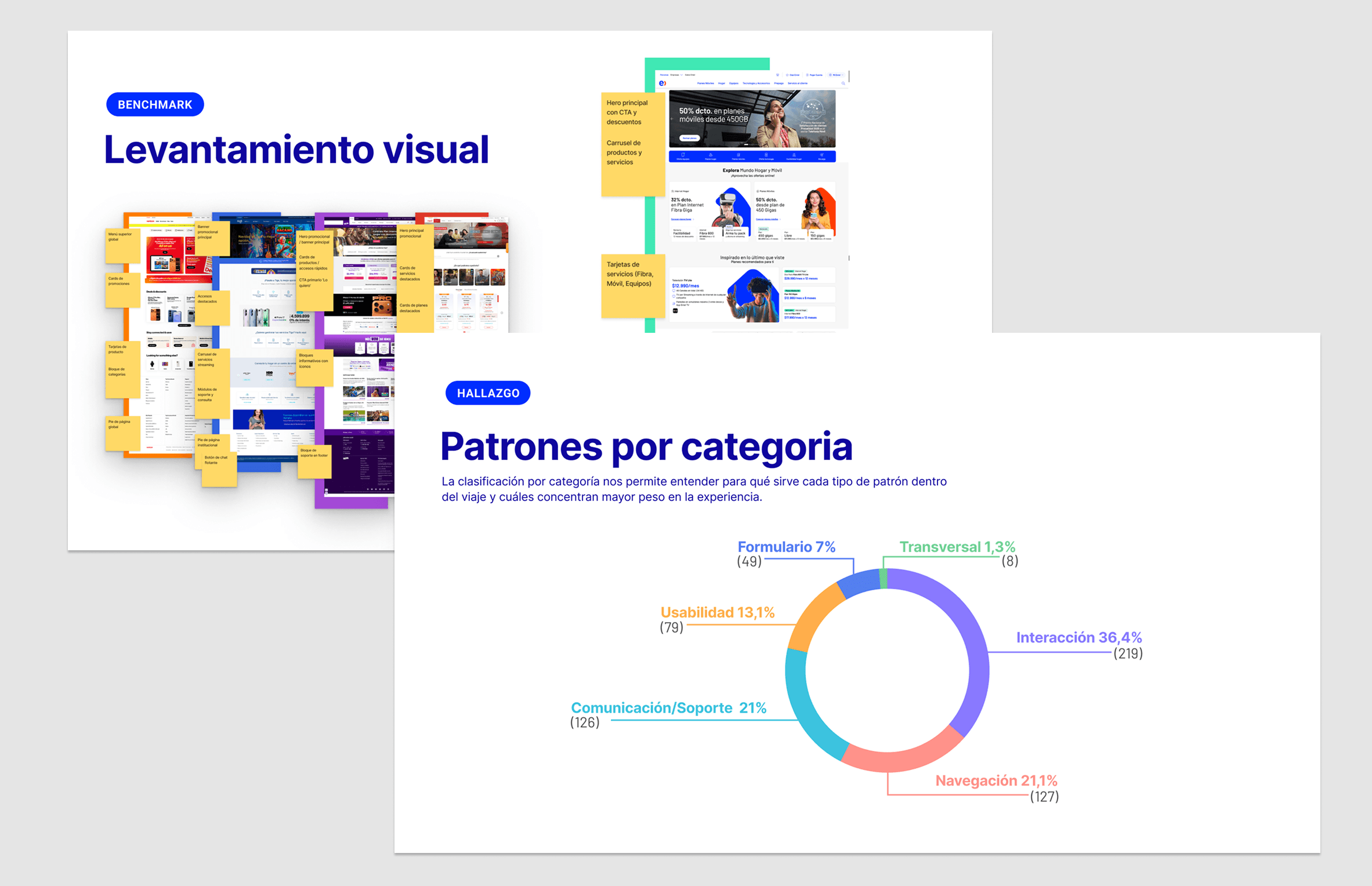 Análisis comparativo de patrones UX a partir de workshops internos y benchmark de industria, con foco en flujos de venta y contratación, orientado a detectar brechas y oportunidades desde una mirada UI y de sistema.