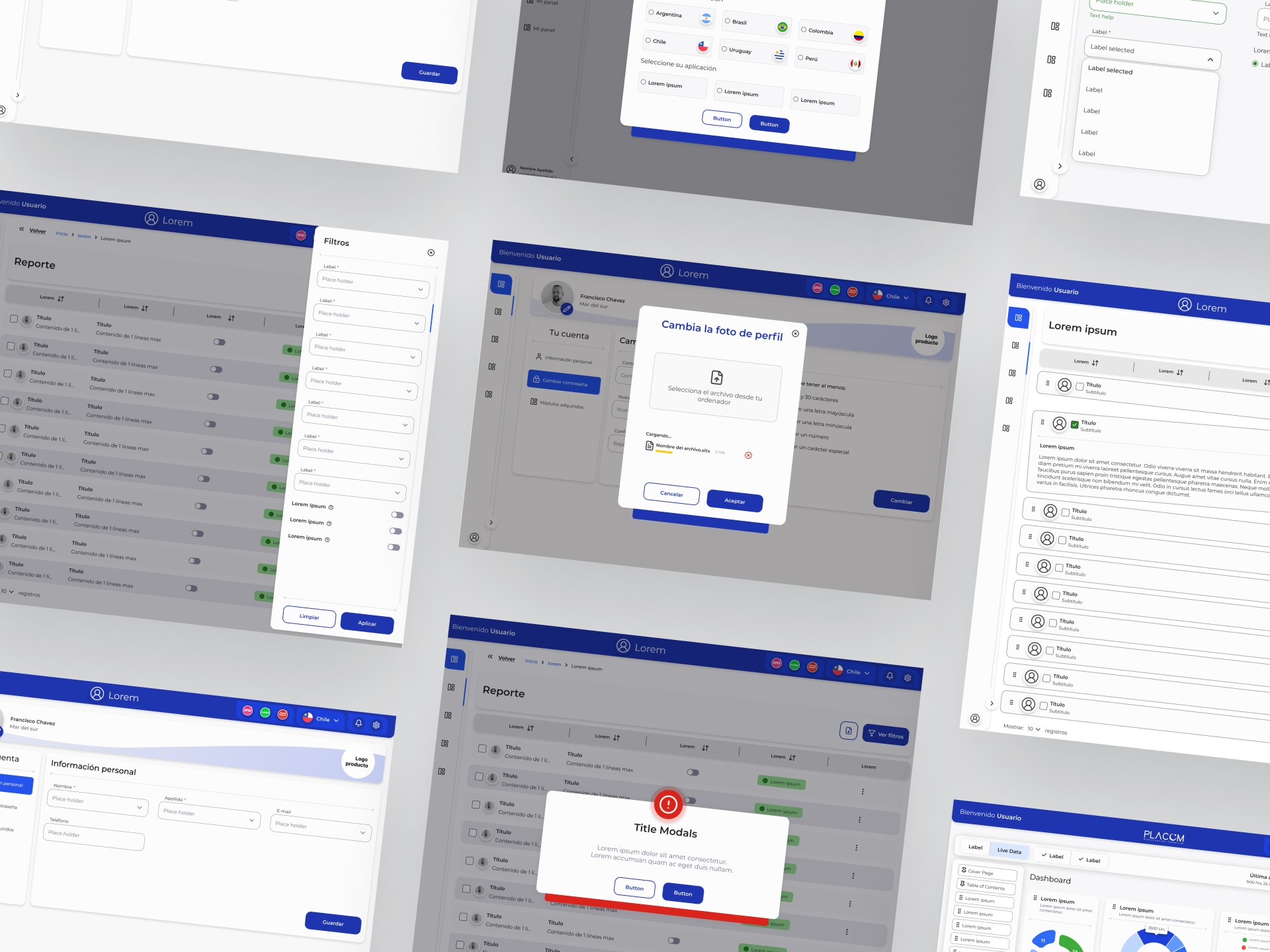 ✔ Biblioteca de componentes: Botones, formularios, modales, inputs, etc.