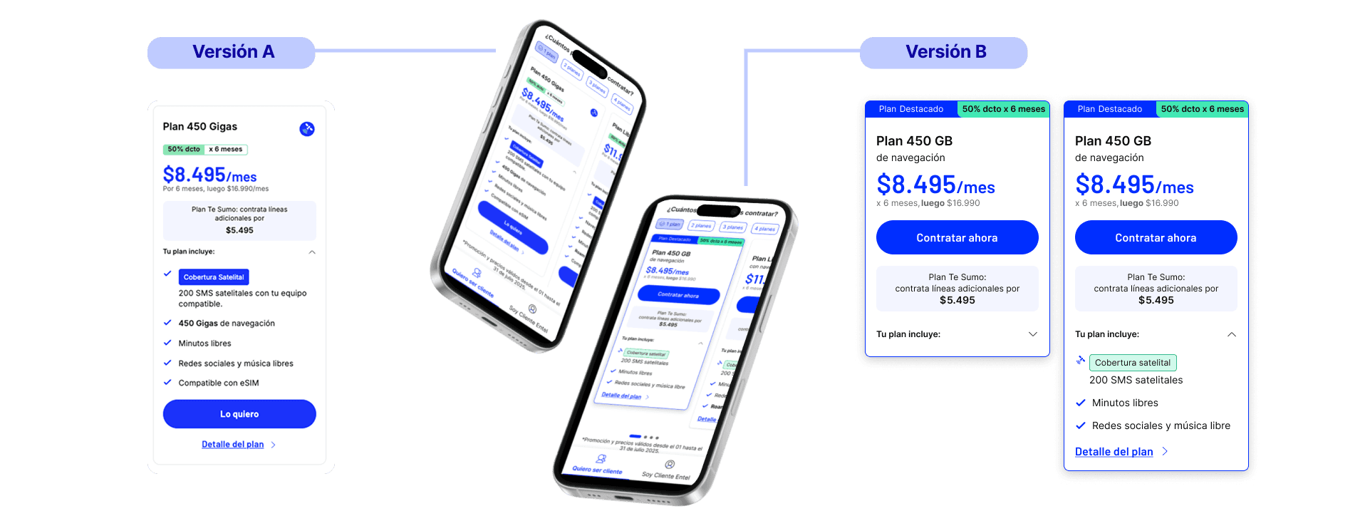 Ambas versiones quedaron preparadas para test A/B, permitiendo evaluar el impacto de las decisiones visuales sobre la comprensión y conversión.